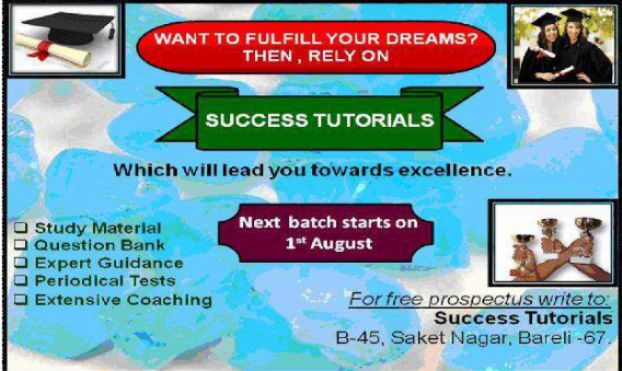 1. On behalf of M/S Success Tutorials, draft an advertisement to be published in a newspaper to attract the attention of Class XII students who dream of being successful professionals.